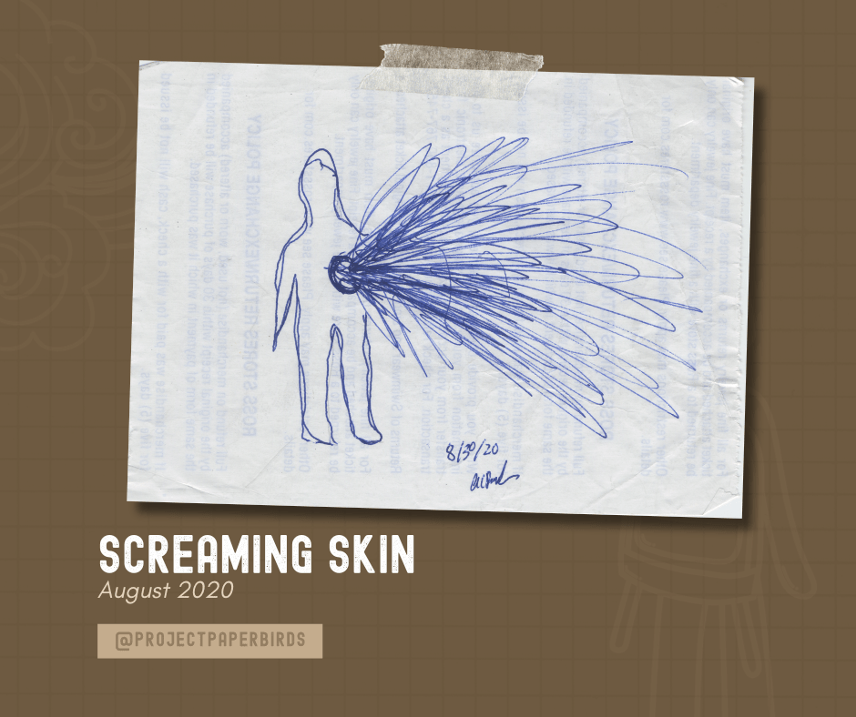 This was a drawing I did the day after August 29th, the night I had my first flashback. I was working at Ross at the time and scribbled it on the back of receipt paper in a desperate attempt to illustrate what that experience had felt like.